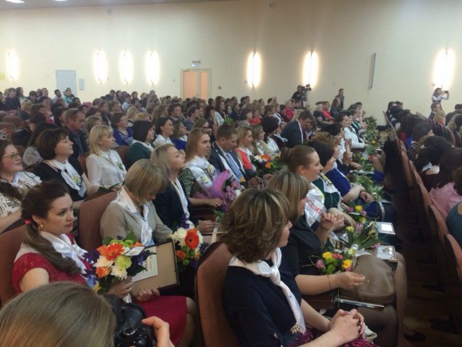 В актовом зале 94 школы не было свободных мест: поддержать товарищей пришли их родные и коллеги.