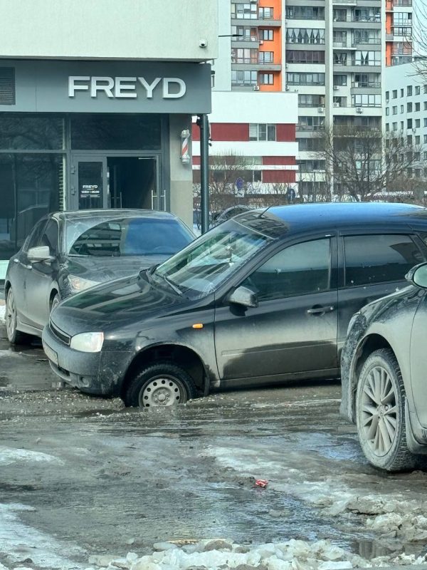 В тюменском микрорайоне «Европейский» машины провалились под асфальт