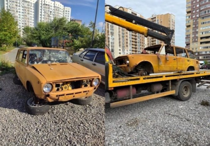 Во дворе на Зелинского избавились от ржавого автохлама