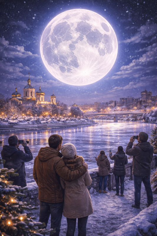 Уже днём 3 января тюменцы смогут наблюдать первое в 2026 году суперлуние — так называемое «Волчье» полнолуние. Оно станет особенно заметным: Луна подойдёт к Земле примерно на 50 тысяч километров ближе, из-за чего будет казаться крупнее и ярче обычного.