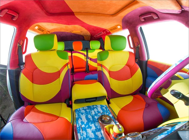 — Однажды я решил купить новую машину. Поскольку семья большая — трое детей, коляски с велосипедами, да и теща в гости иногда приезжает — нужно было что–то большое и толстое, прямо как я. Поскольку я, в принципе, ебанутый, а ДС — город серый и гнусный, то хотелось чего–то веселого, а вместо этого я впал в уныние от того, как скучно нынче выглядят жоповозки. Вдоволь набродившись по интернетам, каталогам и салонам стало ясно, что купить то, что нравится, не выйдет, и любой аппарат придется дорабатывать напильником. В конечном итоге сейчас я езжу вот на этом, — рассказывает владелец чудо-автомобиля.