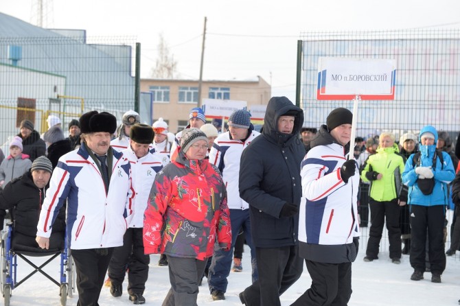 После приветственного слова почетных гостей заслуженный мастер спорта России по лыжным гонкам Павел Саксин, мастера спорта международного класса по лыжным гонкам Эдуард Маркелов, Станислав Богданов и кандидат в мастера спорта по лыжным гонкам России Алексей Решетников внесли и подняли флаг «Зимних сельских спортивных игр». По окончанию парада участники разошлись по местам проведения соревнований.