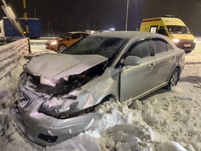 По предварительным данным, на трассе столкнулись автомобили Toyota Avensis и Volkswagen Golf Plus. Удар оказался достаточно серьёзным — одной из участниц аварии потребовалась медицинская помощь.