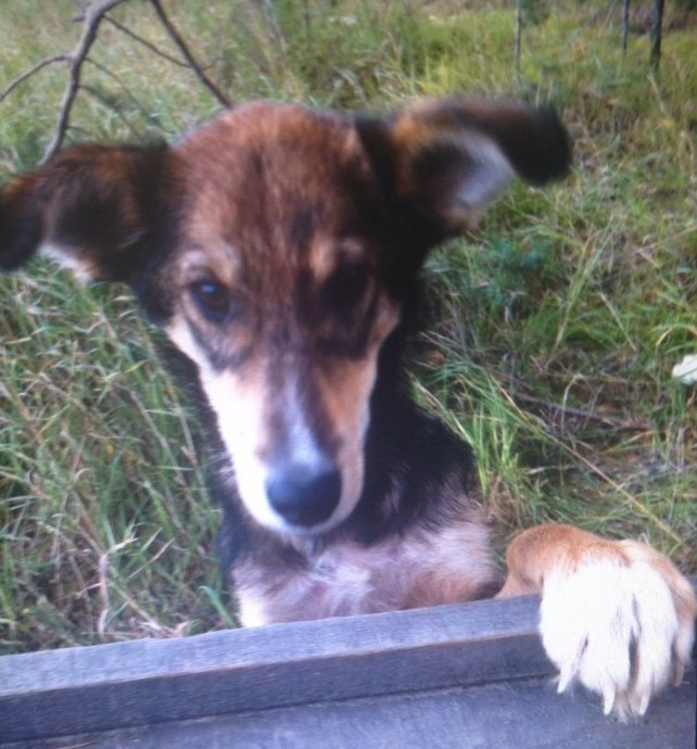 От Анастасии Локотаевой. По ялуторовскому тракту, за мостом где автодром, в лесу рядом с дорогой живут две собаки. Там еще женщина продает в банках всякую всячину, и стоит небольшое кресло.