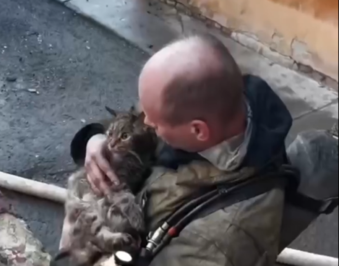 Во время пожара в квартире дома №220 на улице Республики тюменский пожарный Руслан Белоус спас не только людей, но и домашних животных. Из задымлённого помещения он вынес трёх кошек, две из которых были без сознания.