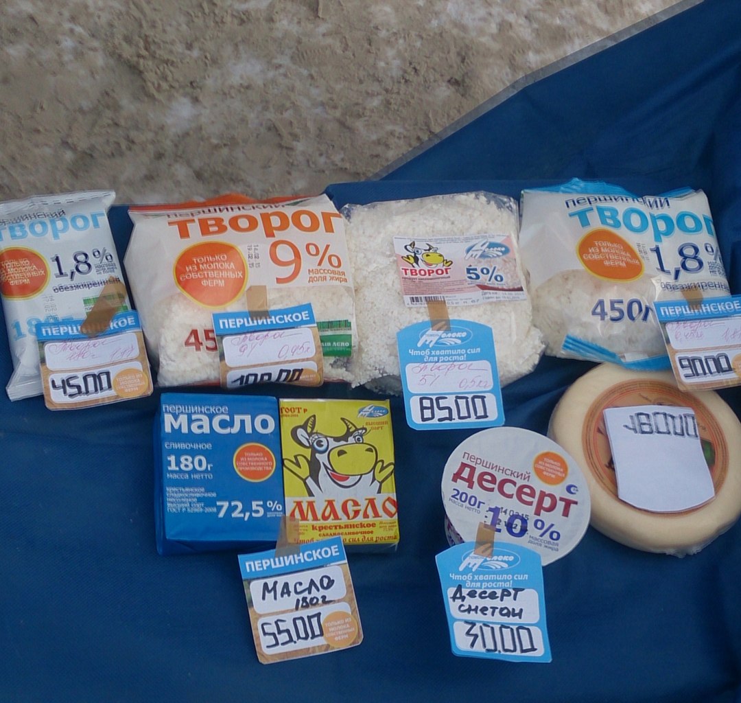 Ну я и пошел закупаться на неделю вперед, на свой скудный бюджет в 1000р. Выбор неплохой: мясо разное, куча разновидностей рыбы, куриные и перепелиные яйца, молоко, творог и масло, курица, овощи, даже мед и сухофрукты были.