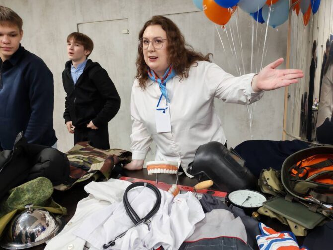Гостей заманивали не только вакансиями и экспресс-собеседованиями. Молодёжь выстроилась в очередь к симулятору сварки, где можно было почувствовать себя мастером производства. А на улице зрителей собирали кинологи полиции: овчарка Грей искала “взрывчатку” и эффектно задерживала “преступника”.