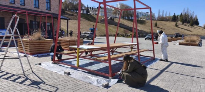 Рабочие красят конструкции, обновляют городскую территорию и готовят пространство к наплыву посетителей. До конца апреля здесь также восстановят обшивку летней сцены, дополнительные скамейки и общественный туалет.