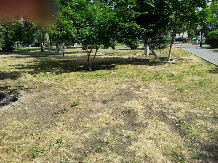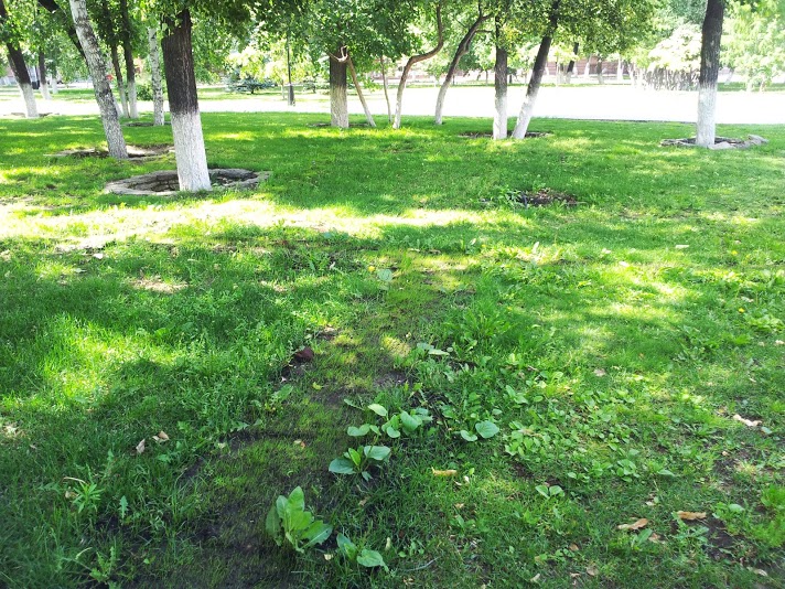 Зато с другой стороны памятника, где этой весной была установлена новая оросительная система, травка радует глаз своей сочной зеленью. Однако тут наблюдается другая проблема — сорняки. Они изрядно портят вид некогда идеального газона. Будем надеяться, что может быть в следующем году трава на Центральной площади будет везде одинаково зеленая и без сорняков.